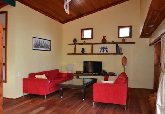 The master bedroom upstairs has its own ensuite, and its own set of beautiful outlooks, it may be hard to get out of bed. The second bedroom is off the lounge and has mountain views and its own little veranda. Also off the living area is an exotic glass ceilinged shower and another bathroom.